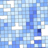 Raster 1000m symbolisiert nach dem Attribut "Anteil attraktiver Wege ÖV" im Zeitraum zwischen 12 und 15 Uhr.