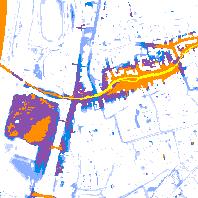 Der Kartendienst (WMS Gruppe) stellt Daten der Starkregengefahrenkarte der Stadt Merzig dar.:Wassertiefe für Niederschlagszenario hN 30 mm